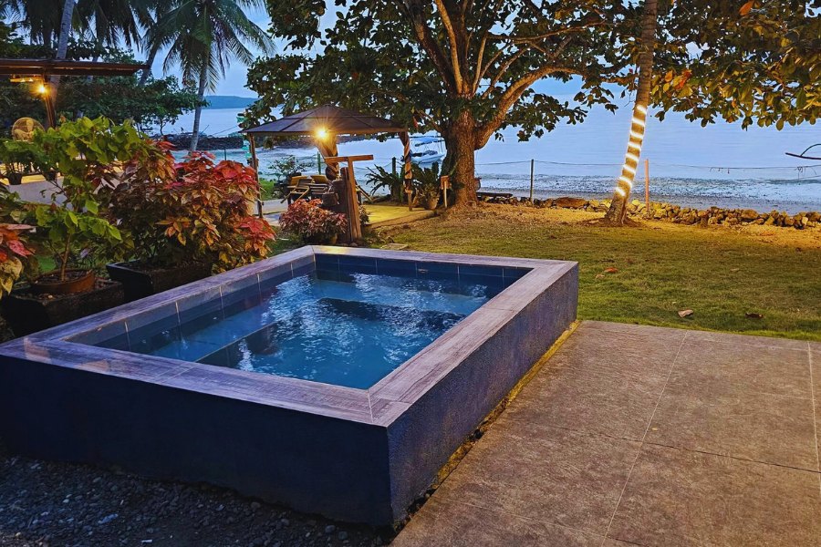 Guests enjoy access to modern amenities including Starlink WiFi, air-conditioned rooms, and an infinity pool overlooking the sea. All rooms are equipped with private bathrooms featuring hot and cold showers, and beddings and towels are provided. A fully equipped kitchen and dining area is available for guests who prefer to cook, or you may opt for gazebo or poolside dining.